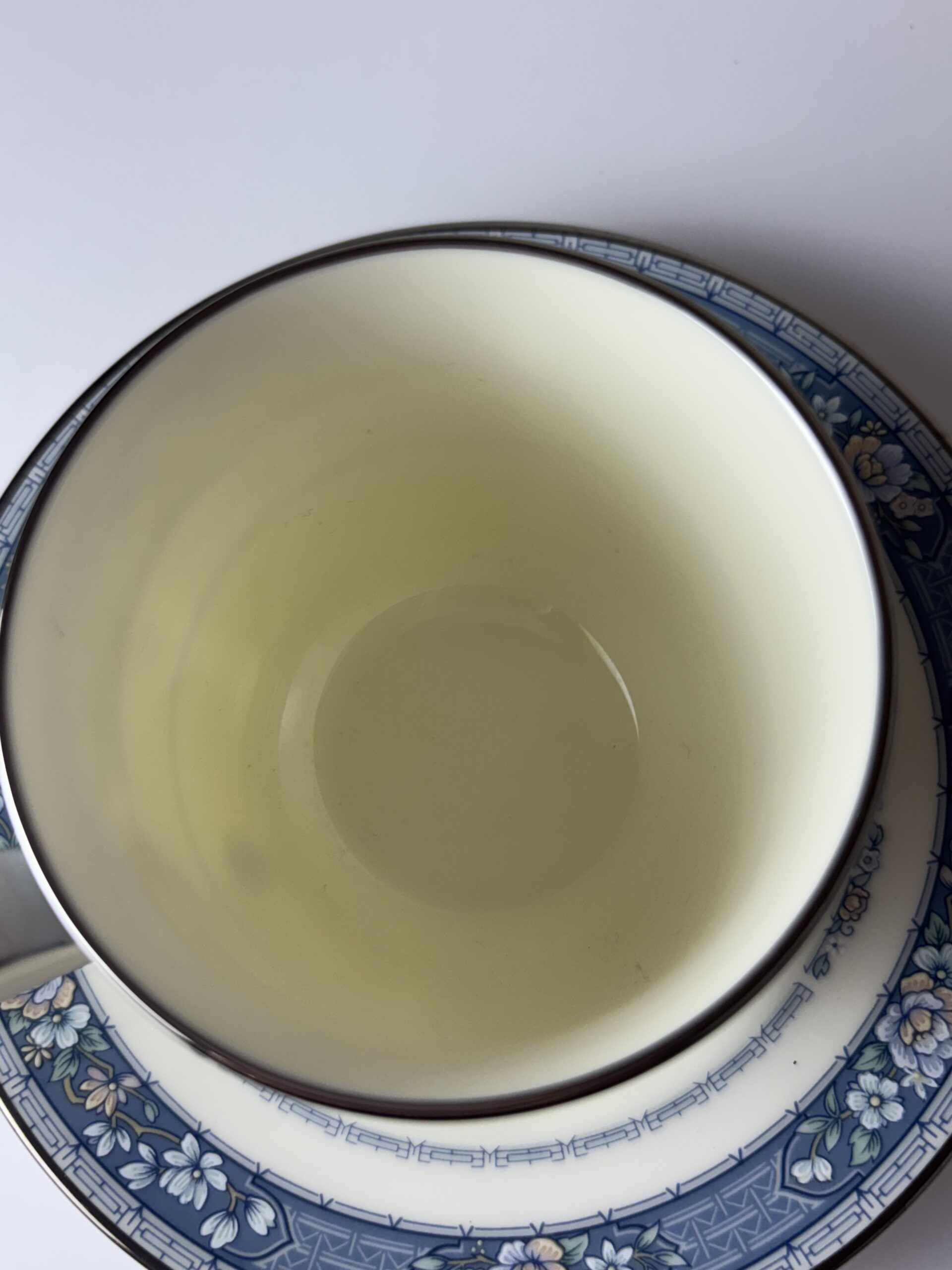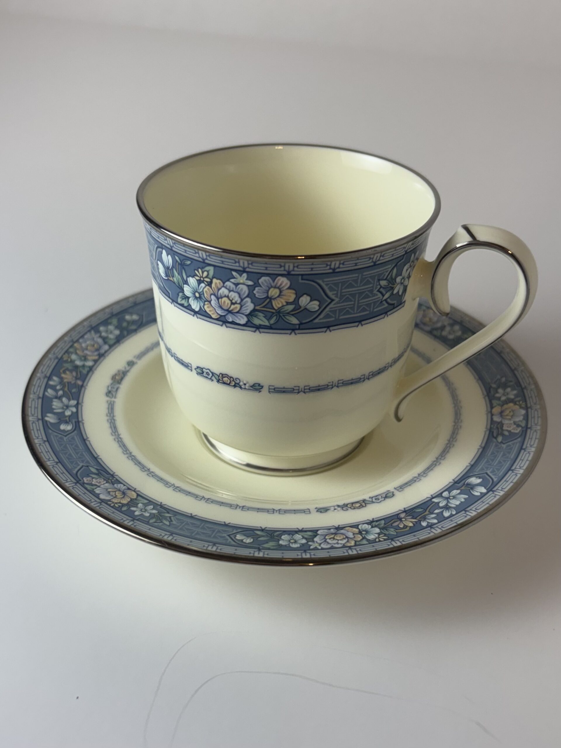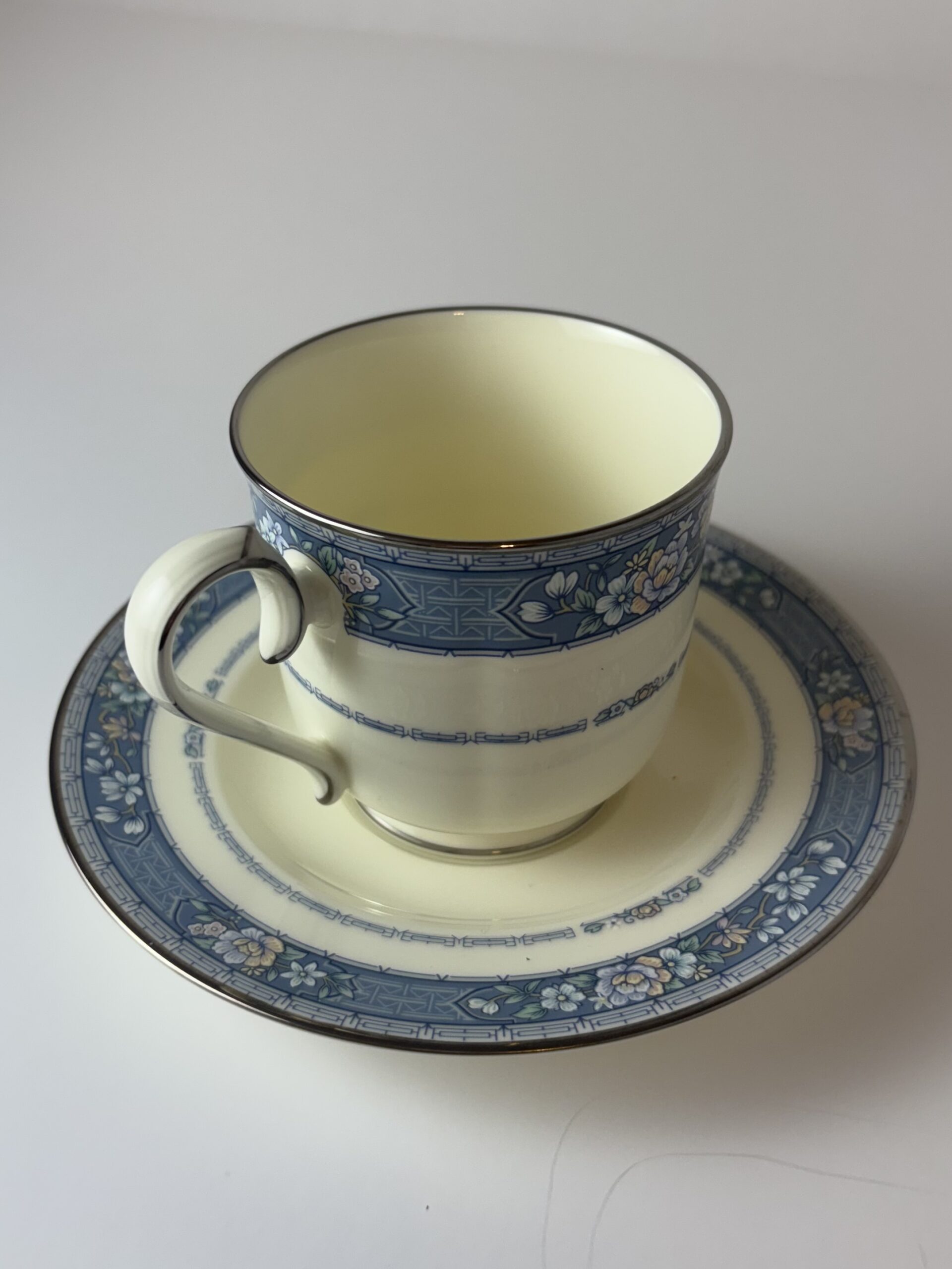 Vintage Noritake bone china in the Randolph pattern (Japan)—soft ivory with that perfectly detailed blue floral band and the prettiest little silver rim. It’s classic without being stuffy… delicate, but not afraid to be used.